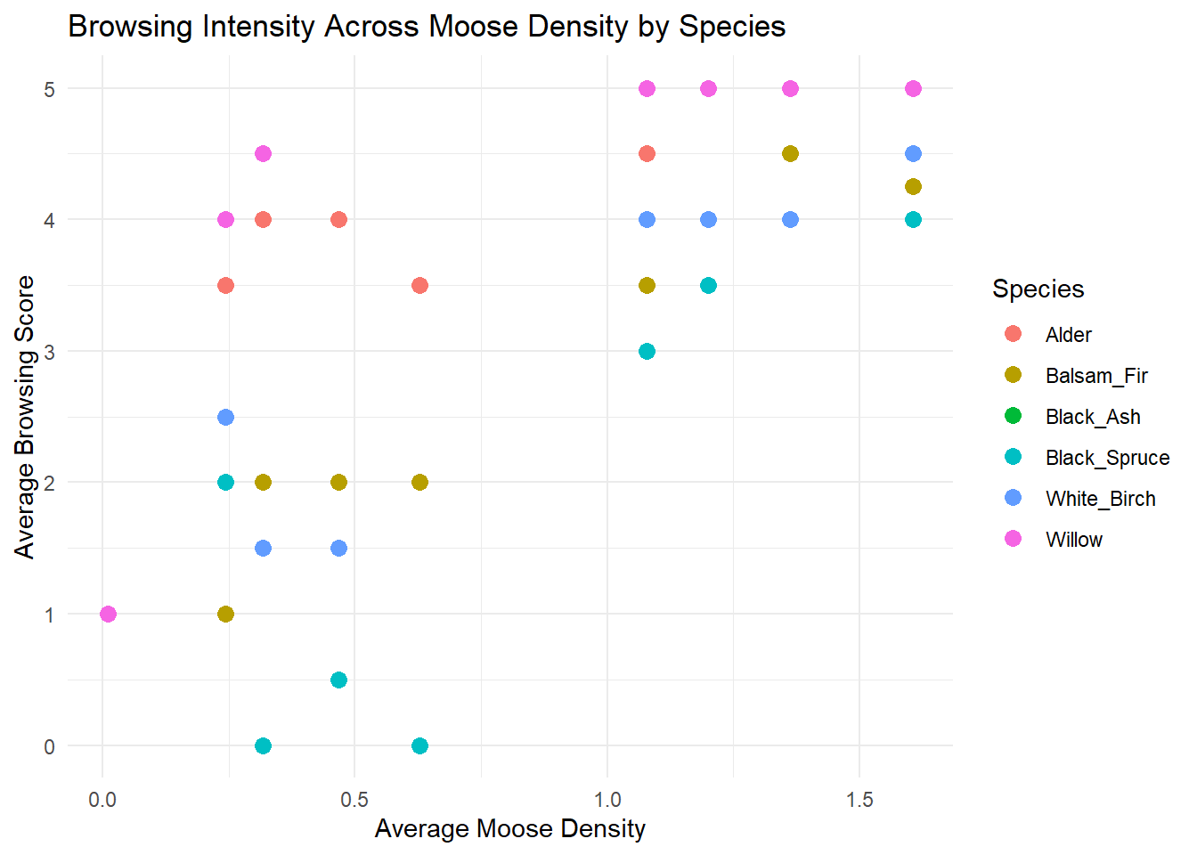 labs(title = "Browsing Intensity Across Moose Density by Species",